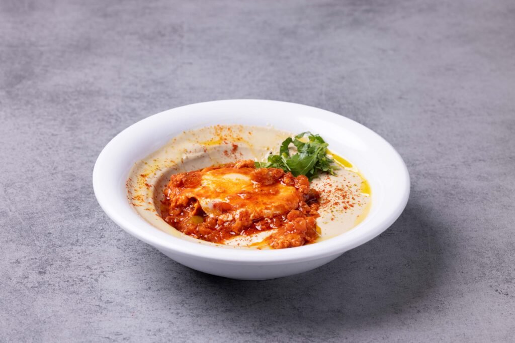 רוטב שקשוקה חם , ביצה , שמן זית , תבלינים ופטרוזיליה